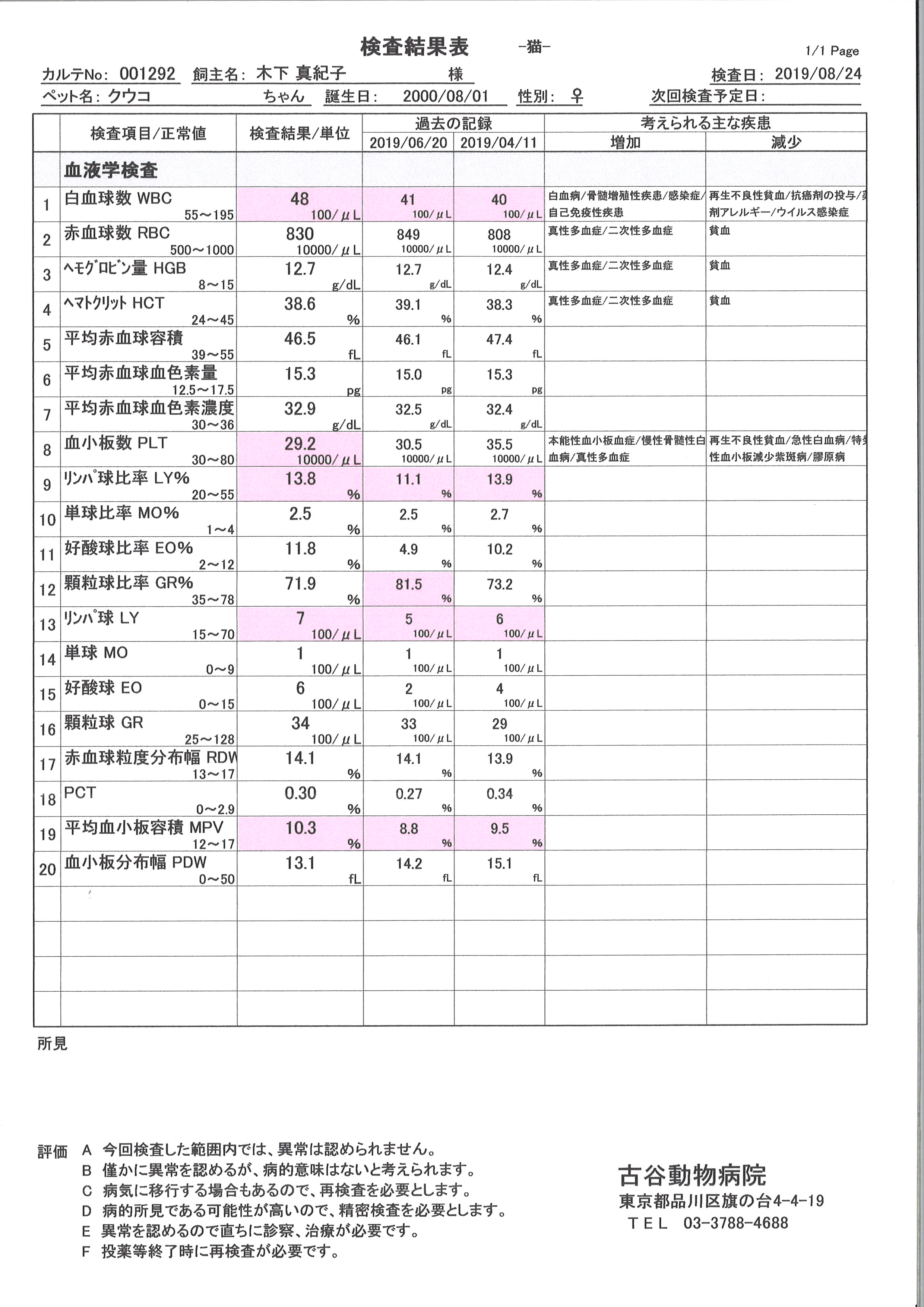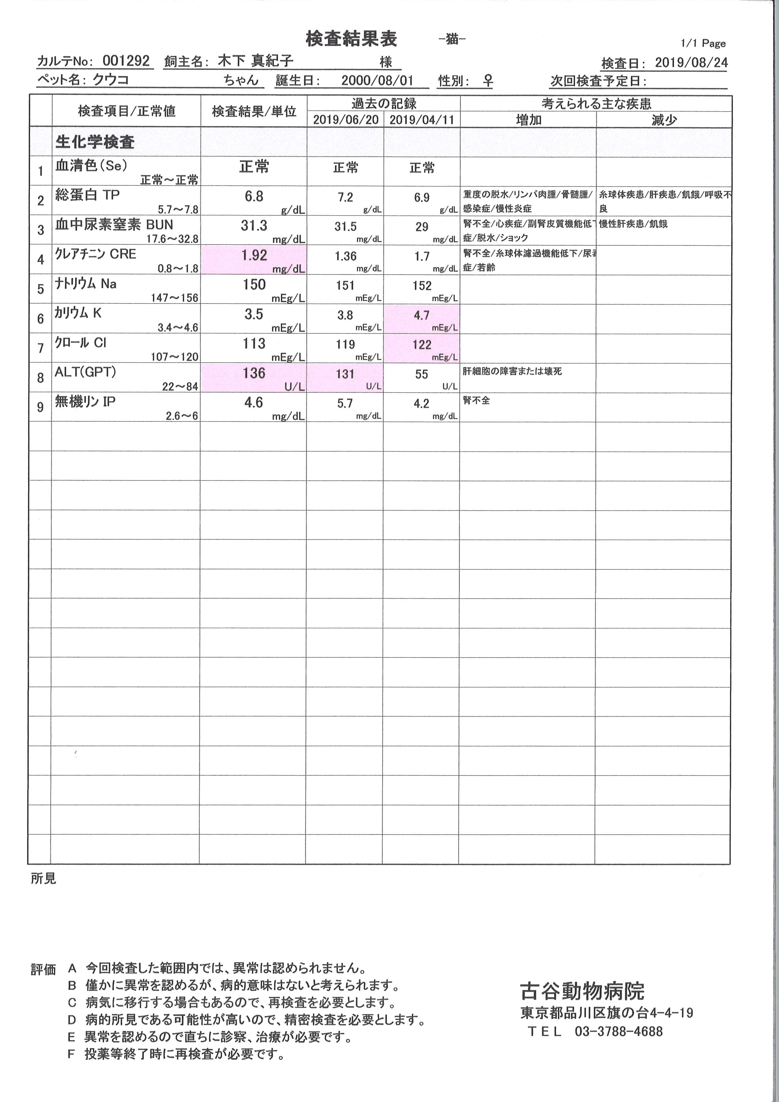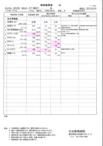 血液検査:クレアチニンが若干上がっているが特に問題なし。